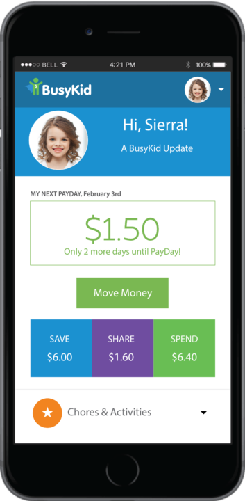 Kids check off chores as they are completed, and come payday (every Friday), kids receive their allowance for a job well done. The app is connected to a parent’s bank account and parent approval is required before money is transferred to the child’s BusyKid account—which is safely held at an FDIC-insured bank.