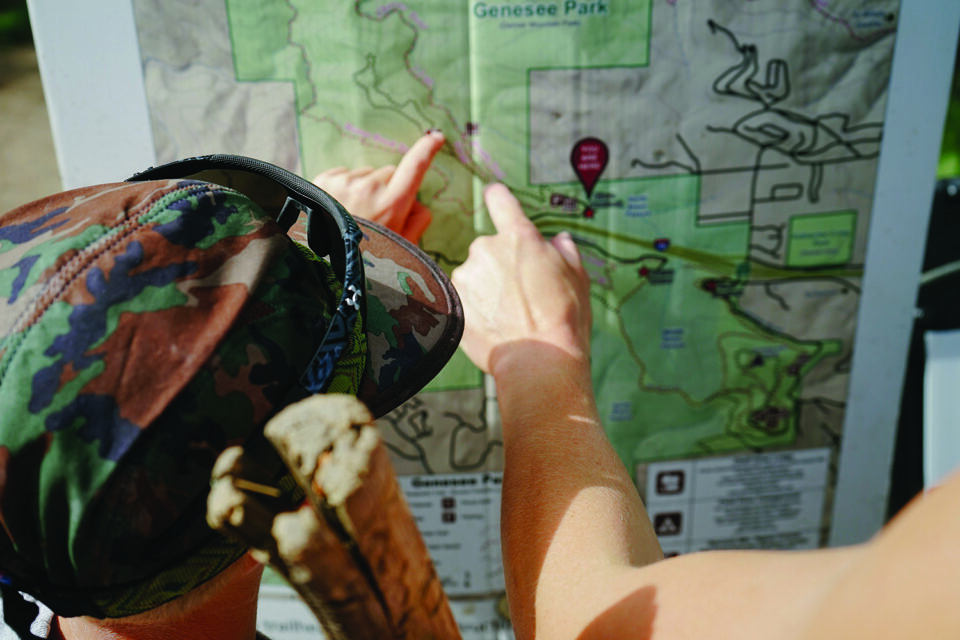 Finding the trailhead: I-70 bisects Genesee Mountain Park. Take exit 253—bypassing the Genesee Park exit (254) if you’re coming from Denver—and drive north to Stapleton and Moss Rock roads. Turn right onto Stapleton Road. Follow it for about a half mile to a parking lot, on the left.