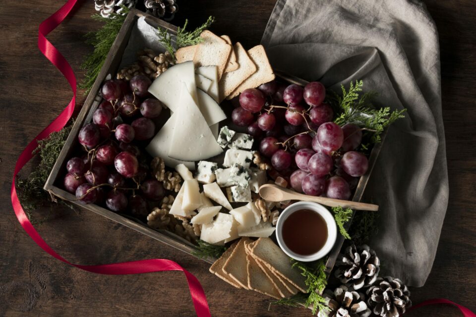 - Holiday Colors: Use red, green, and white ingredients like cranberries, green grapes, and white cheeses to match the season.